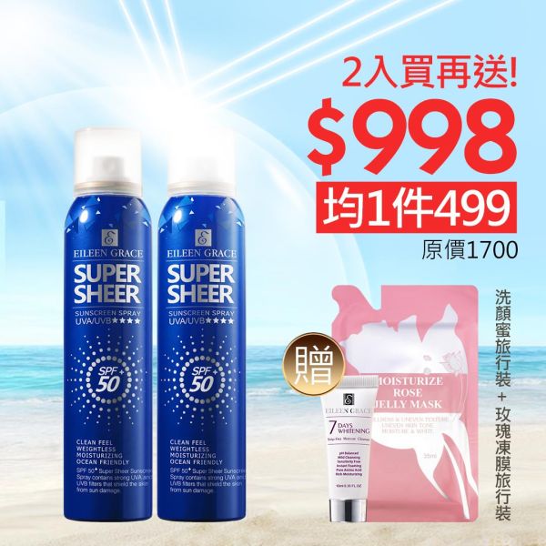 11分鐘前 SPF50+清爽沁涼防曬噴霧 180ml 不熙娣節目推薦 防曬藍朋友、口碑推薦 不黏膩、防潑水、藥妝檢驗合格-妍霓絲 - 新品嘗鮮 二入組NT$998