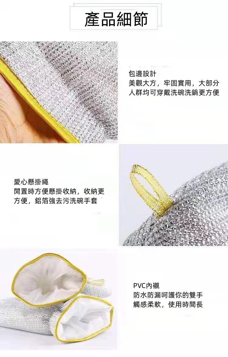 半小時前鋼絲洗碗手套,一年四季都要護手,全新升級pvc防水內襯,耐熱性強,阻擋酸堿,抹布與清潔球的結合體,自帶掛繩方便收納 - 嘗鮮【買三送二】5雙-NT$990