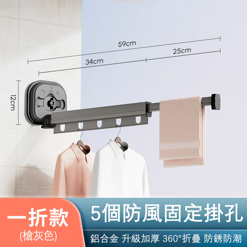 25分鐘前【不佔空間 晾衣神器】吸盤壁掛式鋁合金折疊晾衣架「免打孔 即吸即用」 - S【短款 - 兩段一折】鋁合金伸縮晾衣架 = NT$1099