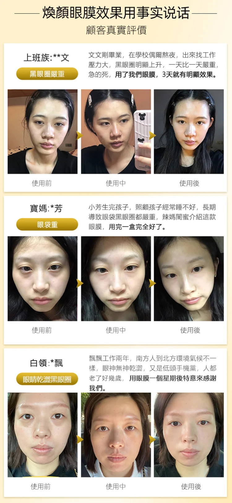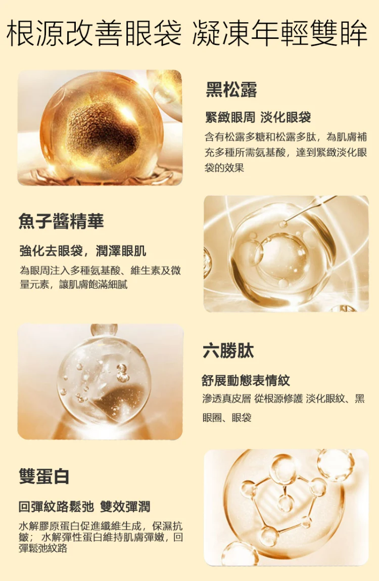 半小時前Kevin老師強烈推薦醫美級【黃金煥顏緊緻眼膜】 裹有黑松露、魚子醬、六勝肽等專櫃等級去眼袋成分,28天有效緊緻眼周去眼袋,限時搶購,售完恢復一盒1399!!! - 限時特價】買二送二僅需1690